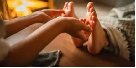 - Wrijf je wijsvinger met lichte druk tussen de teenkootjes op en neer.